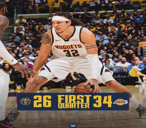 第一节打完,湖人34-26领先8分。掘金的防守策略也是夹击东契奇,就赌其他湖人球员外线投不进,可惜今天掘金赌错了。首节湖人三分球13中6,三分命中率46.2%。第二节湖人用同样策略去夹击大瓦兰,后者两次横传失误被换下。
