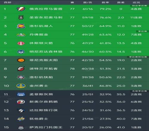 北京时间4月3日,今日的NBA常规赛全部结束,西部球队至少打完了76场,最多进行了78场,我们看看最新的积分榜排名!