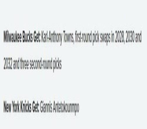 雄鹿得到:唐斯、2028/2030/2032年首轮签互换权、3个次轮签