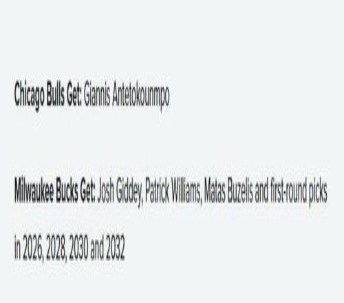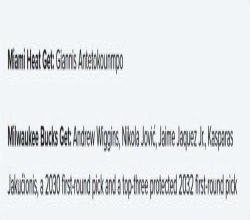 雄鹿得到:维金斯、约维奇、小海梅-哈克斯、亚库齐奥尼斯、2030年首轮签、2032年前三保护首轮签
