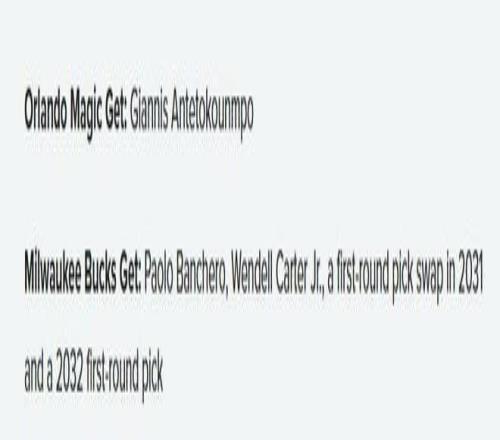 雄鹿得到:班凯罗、小温德尔-卡特、2031年首轮签互换权、2032年首轮签