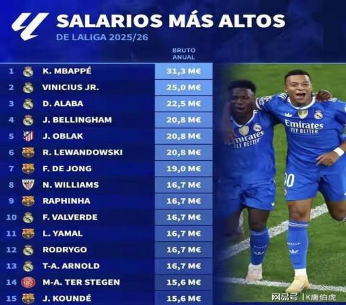 西甲球员年薪榜单(税前)
