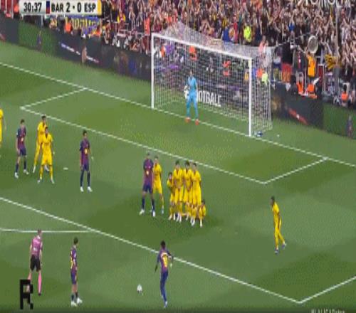 第32分钟,亚马尔任意球攻门,皮球滑门而过