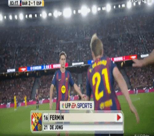 第84分钟,费尔明被换下,德容替补登场