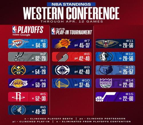 湖人也在偷偷上分。詹姆斯和东契奇带队三连胜,西区第四的排位看似安全,实则只领先身后半个胜场。洛杉矶球迷的焦虑写在弹幕里:「赢三场喘口气,输一场又附加赛见。」