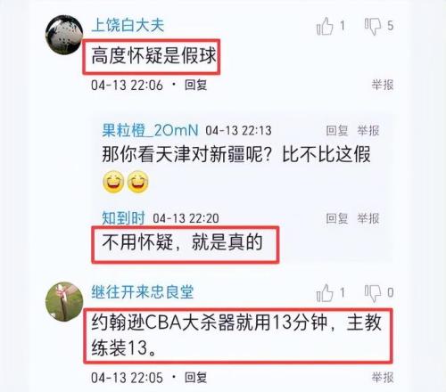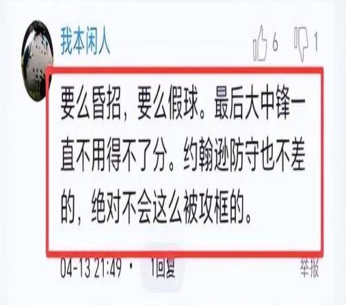 赛后球迷纷纷评论,浙江队是有意战略放弃,有的说“高度怀疑是假球”,有的说“不用怀疑,就是真的”、“要么昏招,要么假球。最后大中锋一直不用得不了分。约翰逊防守也不差的,绝对不会这么被攻框的”、“教练不会不知道,第四节上约翰逊内线是巨大优势”、“约翰逊CBA大杀器就用13分钟,主教练装13。”所以说,这场比赛,浙江队主教练为在季后赛选择对手,避开与上海队同区,“装”的可能性极大。你们说呢?有何看法?