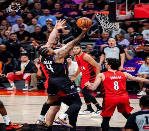 易地再战,格林连续单打不中,狄龙抢断霍勒迪,阿夫迪亚罚球命中。两队各有连续外线打铁,霍勒迪抢断狄龙,阿夫迪亚2罚全中,布克出现个人第4次犯规,太阳队挑战判罚失败。克林根封盖狄龙,格林跳投取分,卡马拉轰进三分球,阿夫迪亚抛投得手。格林失误,阿夫迪亚进攻犯规,狄龙上篮打进,亨德森2罚全中。开拓者打出了12比4的攻势将分差扩大至11分。古德温、吉莱斯皮相继轰进远投,阿夫迪亚上篮打进,斯普利特请求暂停。