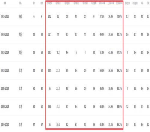 数据显示,比尔22-23赛季常规赛(奇才),场均23.2分3.9板5.4助;23-24赛季常规赛(太阳)场均18.2分4.4板5助1断,以及24-25赛季常规赛(太阳)场均17分3.3板3.7助1.1断;本赛季常规赛(快船),场均8.2分0.8板1.7助。