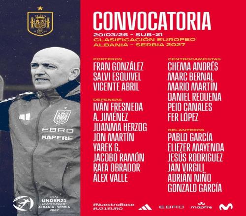 西班牙U21新一期大名单:马克贝尔纳尔和贡萨洛加西亚在列