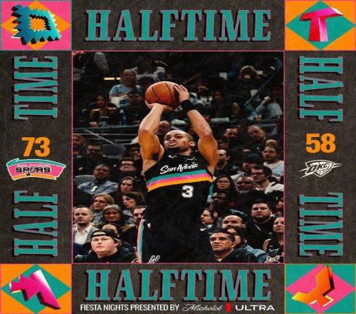 次节比赛,马刺连续两节得分30+,雷霆也首次单节得分30+展开对攻。马刺内外开花碾压残阵雷霆,在前3分20秒马刺一波13-4攻势压制,已经扩大52-30领先雷霆22分优势。雷霆连续外线三分命中,打出一波18-6攻势追到差10分,雷霆再度多点开花扩大领先优势,马刺单节34-32净胜2分,上半场比赛结束马刺73-58领先雷霆15分优势。