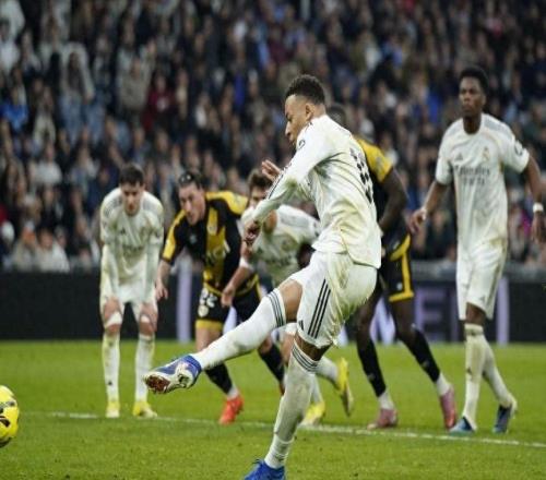 西甲第22轮战报皇家马德里 2–1 巴列卡诺进球:维尼修斯(15')、姆巴佩(90'+10,点球);弗鲁托斯(49')在2月1日晚进行的西甲第22轮比赛中,皇家马德里凭借姆巴佩补时第10分钟罚进的一粒点球